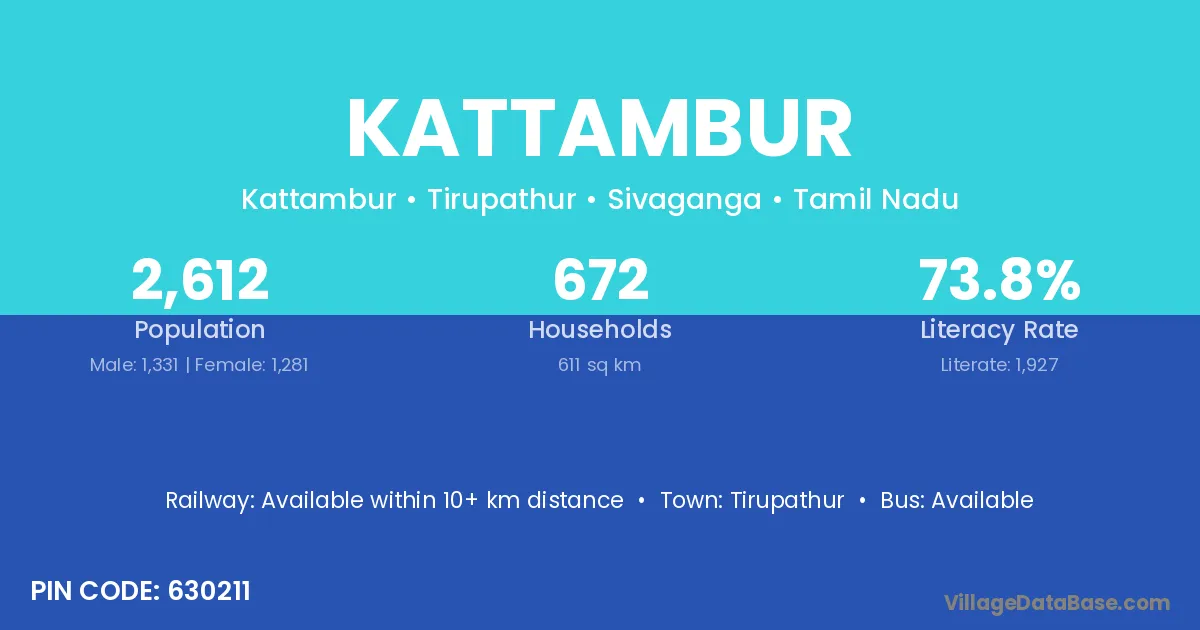 According to Census 2011 information, the village code of Kattambur village is 630211.