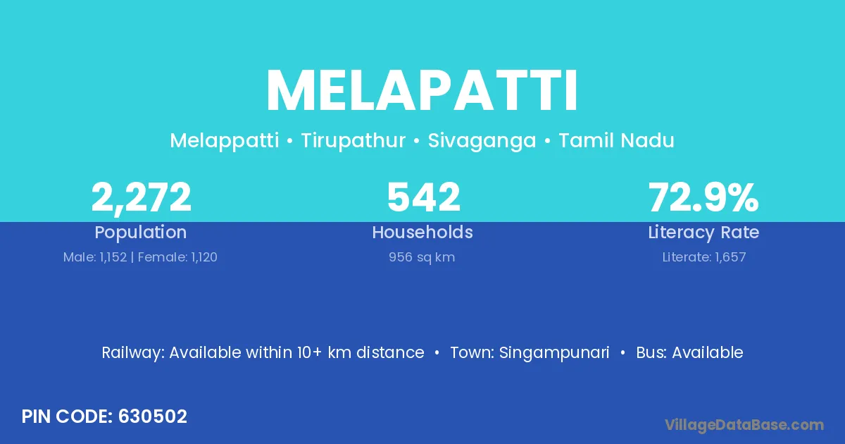 Singampunari is the nearest town to Melapatti village for major economic activities