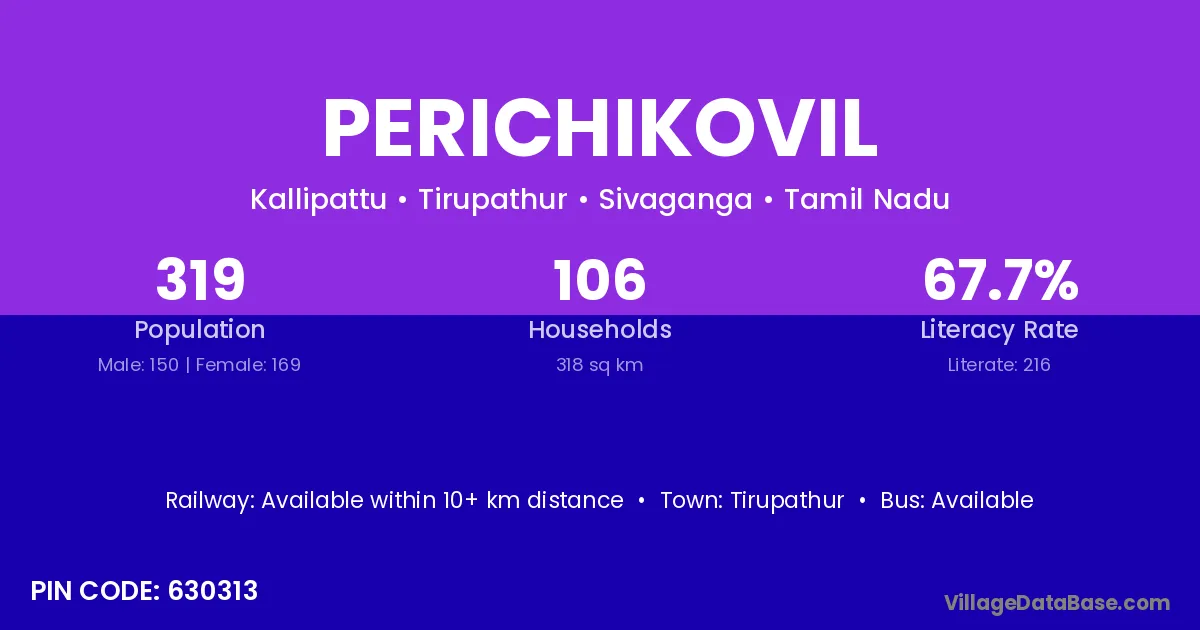 Tirupathur is the nearest town to Perichikovil village for major economic activities