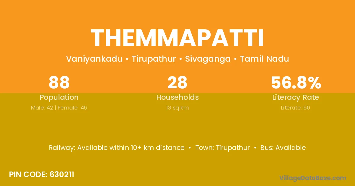 According to Census 2011 information, the village code of Themmapatti village is 630211.