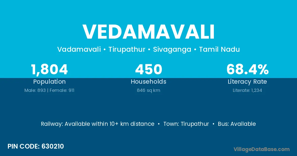 Tirupathur is the nearest town to Vedamavali village for major economic activities