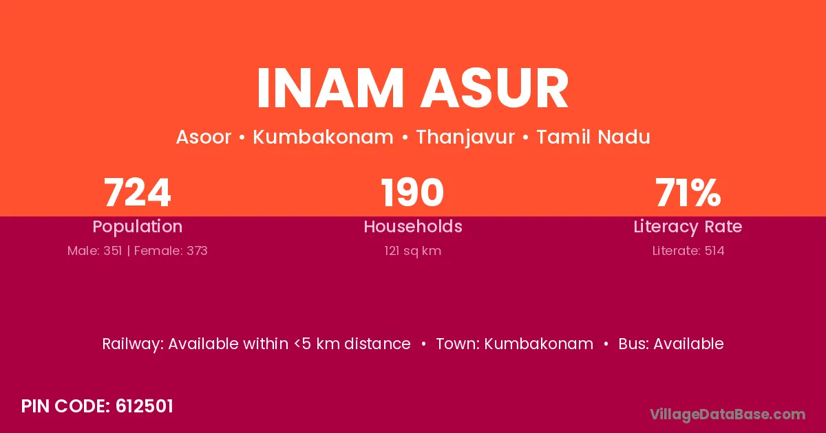 Kumbakonam is the nearest town to Inam Asur village for major economic activities