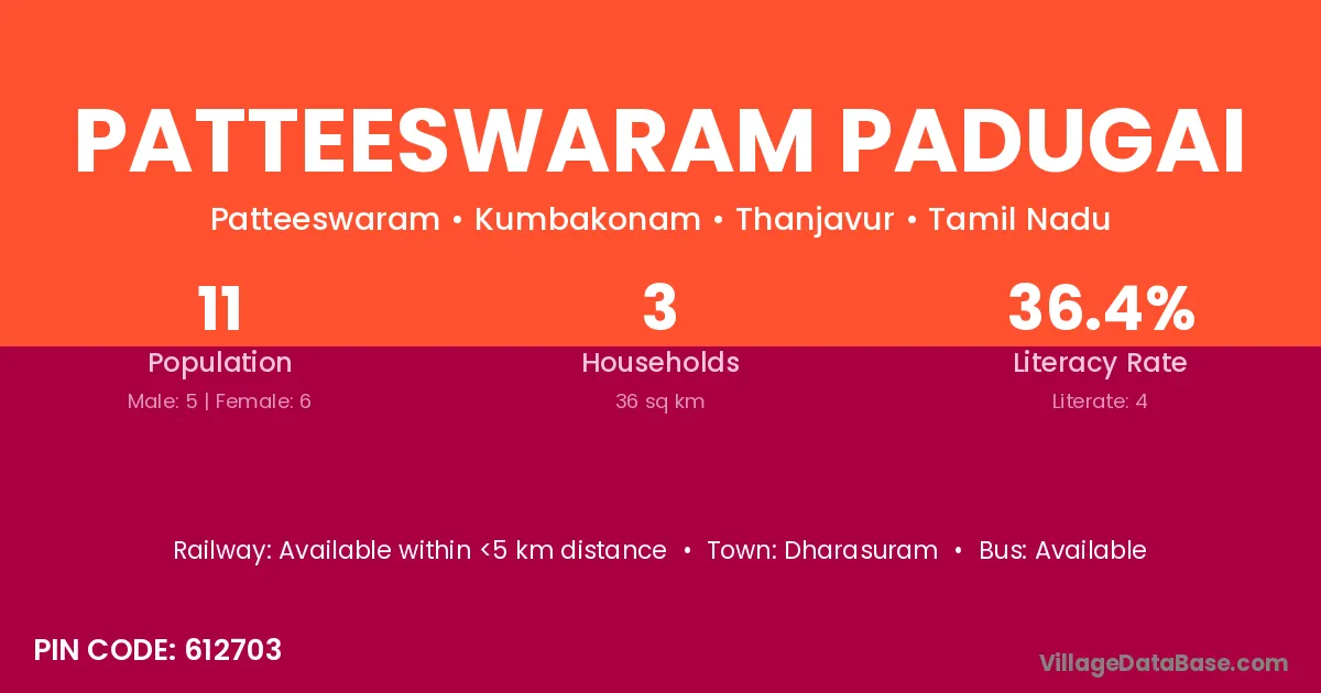 Patteeswaram Padugai village has a total population of 11 people, of which 5 are males and 6 are females.