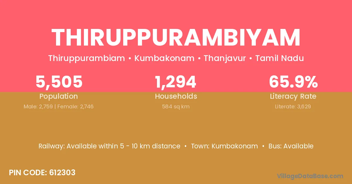 Kumbakonam is the nearest town to Thiruppurambiyam village for major economic activities