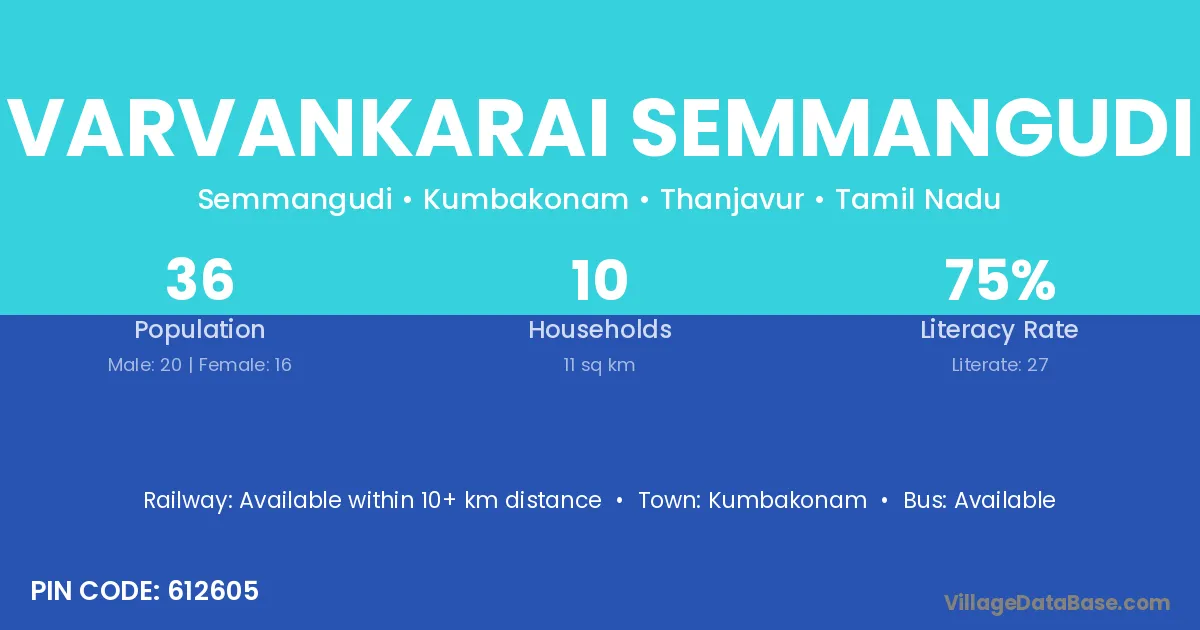 Varvankarai Semmangudi village has a total population of 36 people, of which 20 are males and 16 are females.