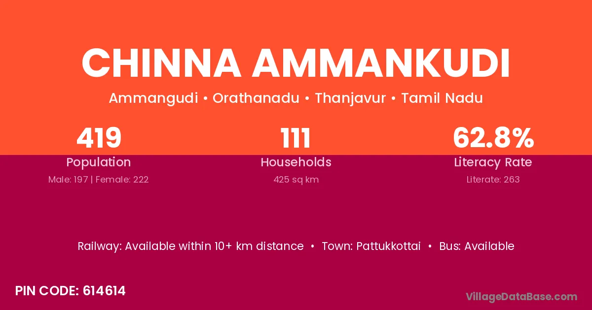 Chinna Ammankudi village has a total population of 419 people, of which 197 are males and 222 are females.