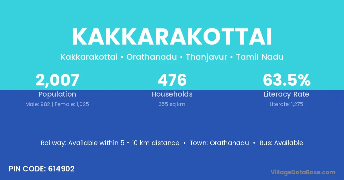 Kakkarakottai village has a total population of 2,007 people, of which 982 are males and 1,025 are females.