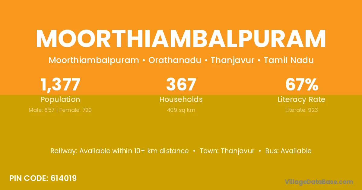 Thanjavur is the nearest town to Moorthiambalpuram village for major economic activities