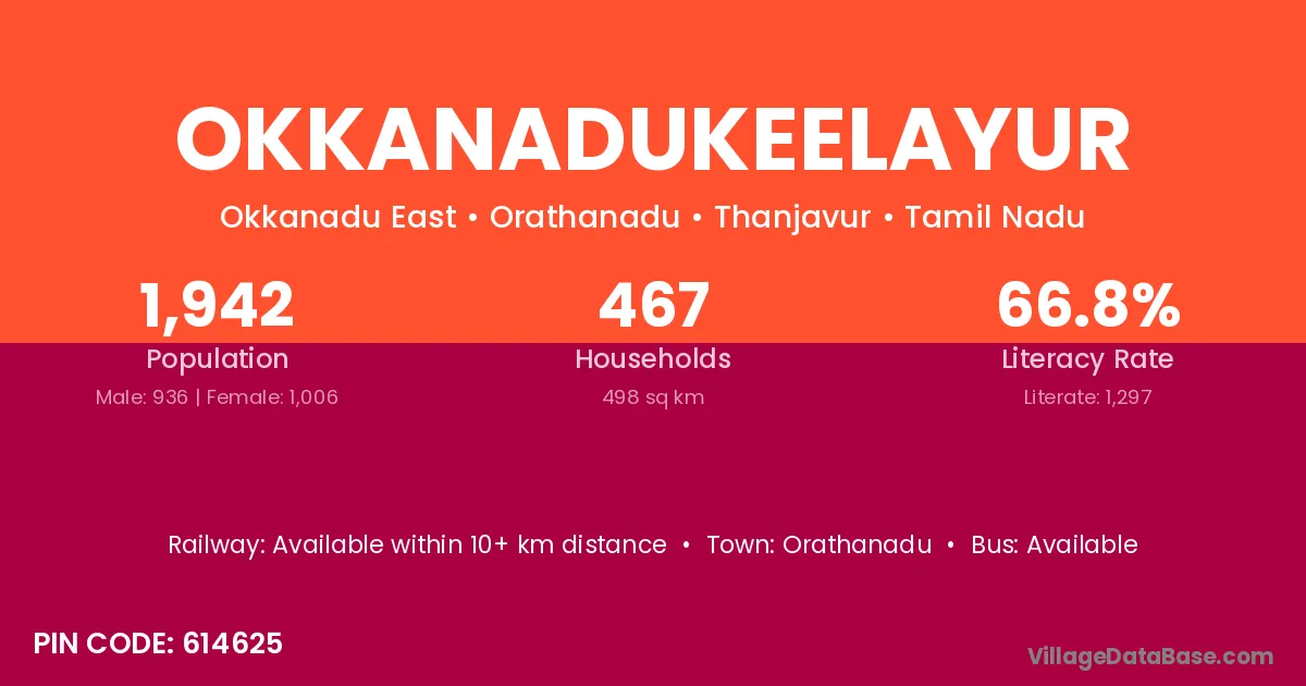 Orathanadu is the nearest town to Okkanadukeelayur village for major economic activities