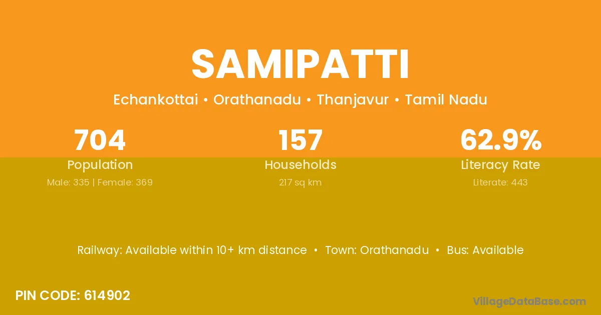 Orathanadu is the nearest town to Samipatti village for major economic activities