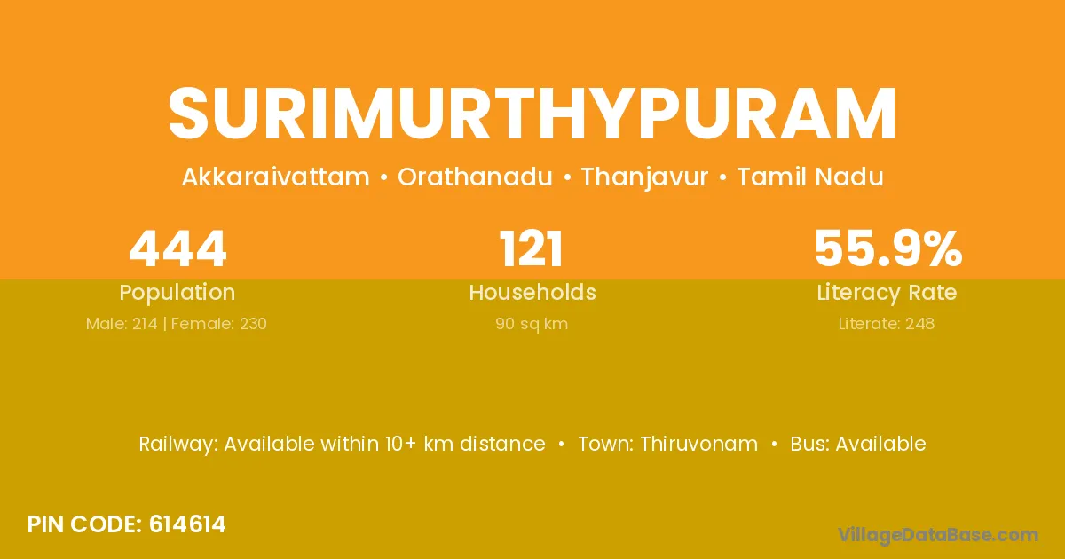 Surimurthypuram village has a total population of 444 people, of which 214 are males and 230 are females.