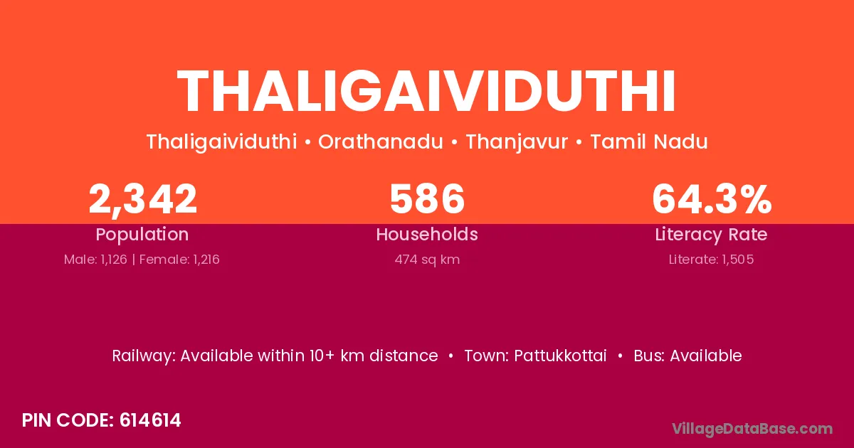 Pattukkottai is the nearest town to Thaligaividuthi village for major economic activities