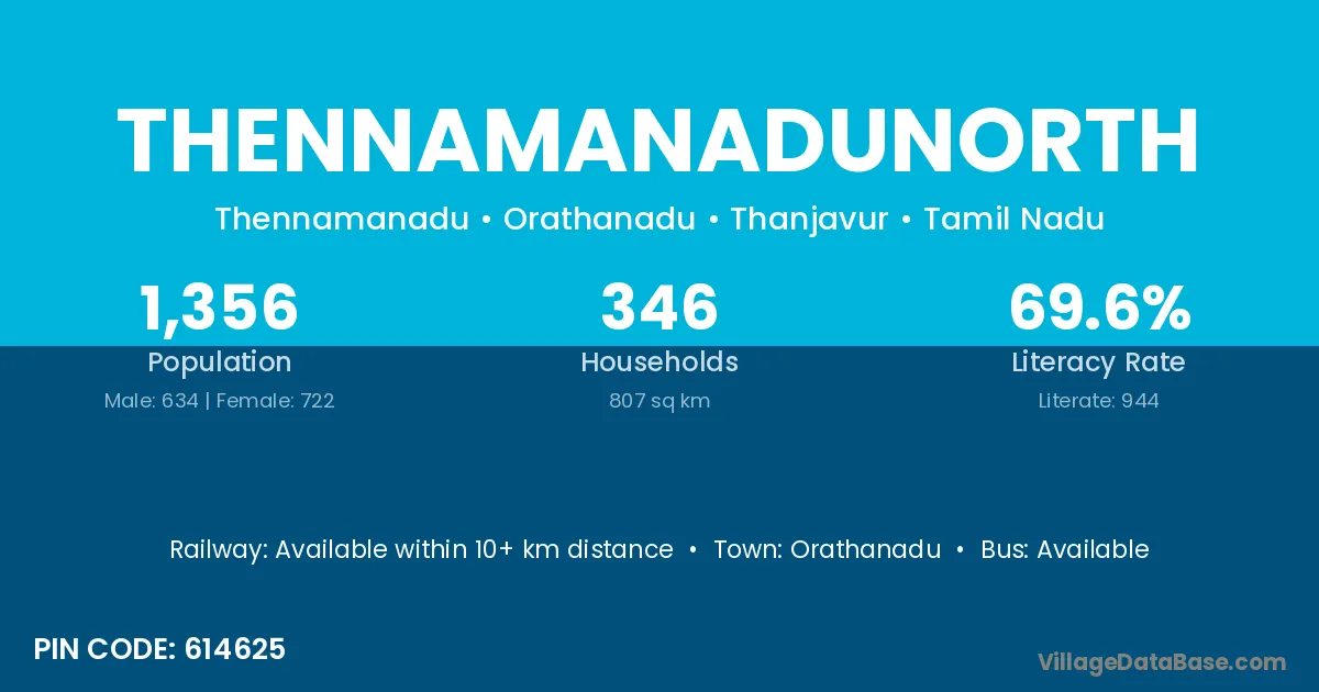 Thennamanadunorth village has a total population of 1,356 people, of which 634 are males and 722 are females.
