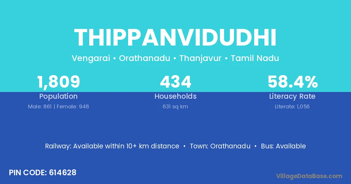 Orathanadu is the nearest town to Thippanvidudhi village for major economic activities
