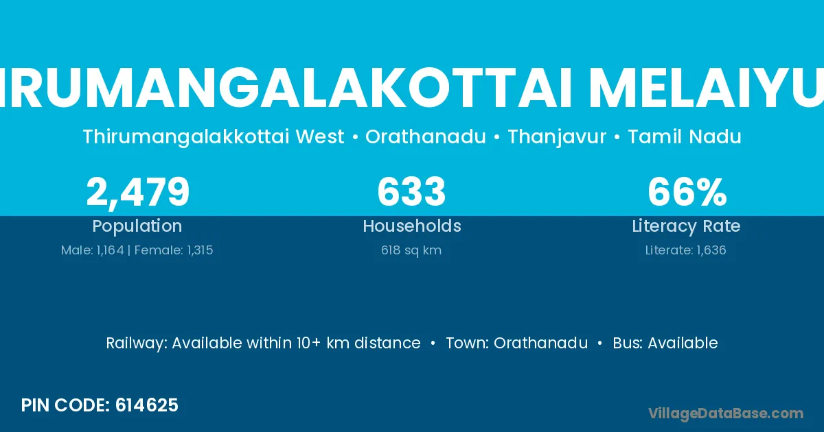 Orathanadu is the nearest town to Tirumangalakottai Melaiyur village for major economic activities