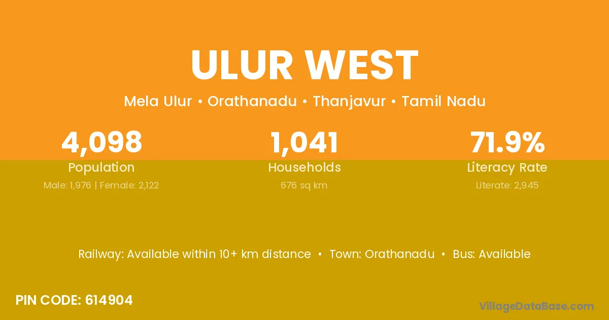 Orathanadu is the nearest town to Ulur West village for major economic activities