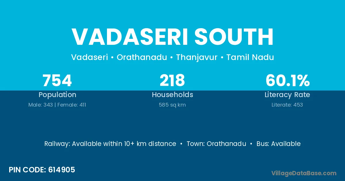 Orathanadu is the nearest town to Vadaseri South village for major economic activities