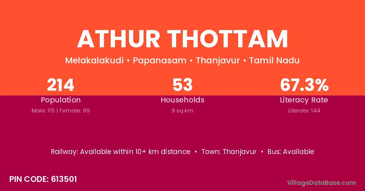 Athur Thottam village has a total population of 214 people, of which 115 are males and 99 are females.