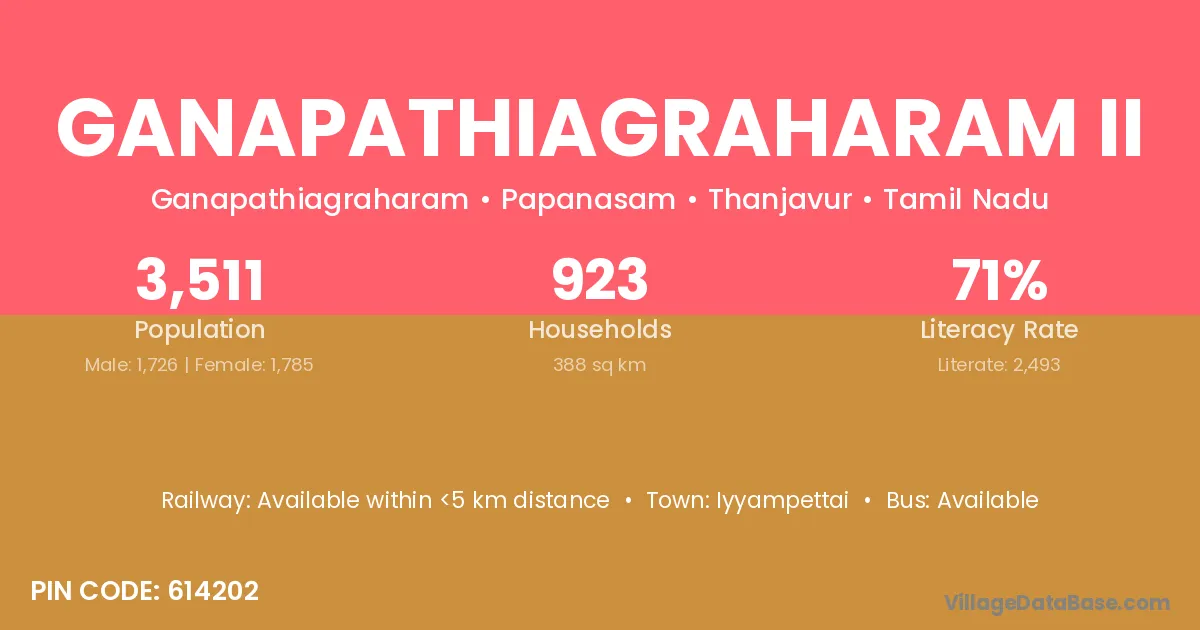 Ganapathiagraharam Ii village has a total population of 3,511 people, of which 1,726 are males and 1,785 are females.