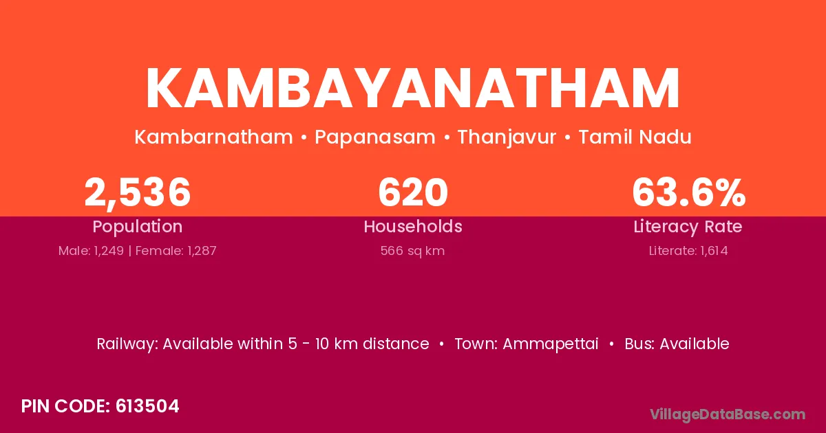 Kambayanatham village has a total population of 2,536 people, of which 1,249 are males and 1,287 are females.
