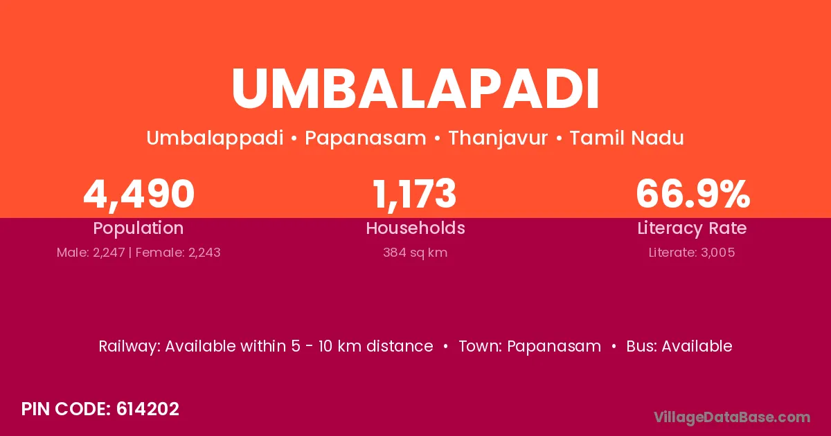 Papanasam is the nearest town to Umbalapadi village for major economic activities