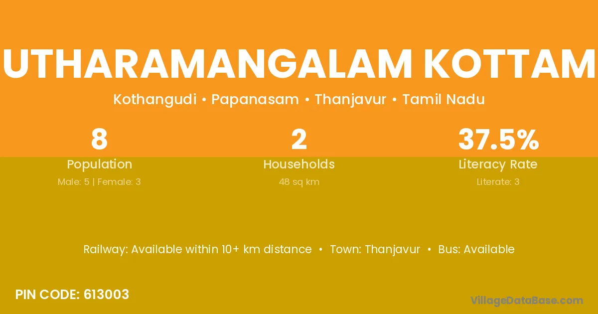 Utharamangalam Kottam village has a total population of 8 people, of which 5 are males and 3 are females.