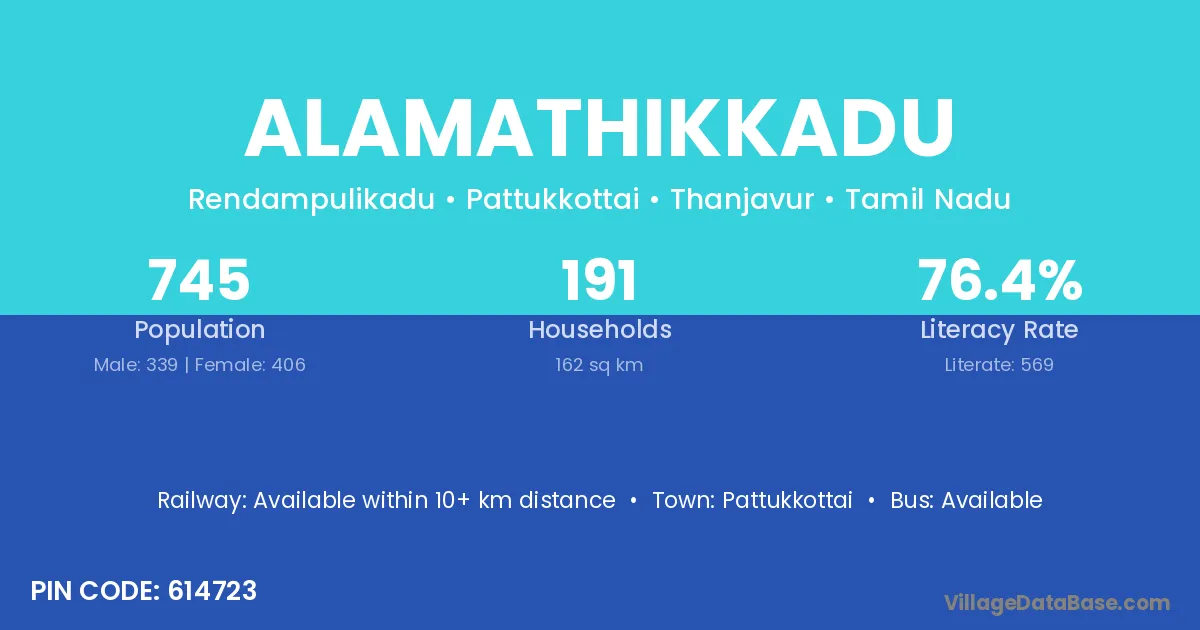 Pattukkottai is the nearest town to Alamathikkadu village for major economic activities