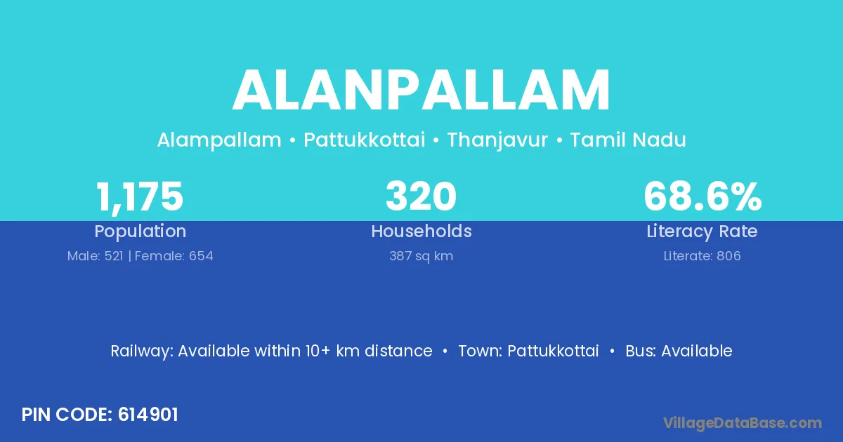 Pattukkottai is the nearest town to Alanpallam village for major economic activities