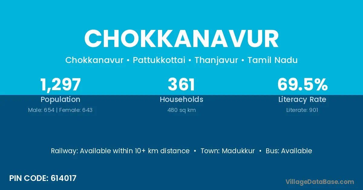 Chokkanavur village has a total population of 1,297 people, of which 654 are males and 643 are females.