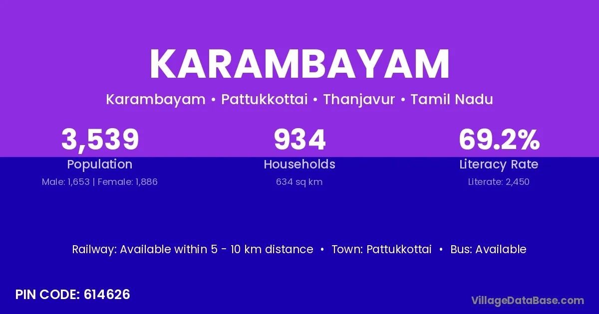 Pattukkottai is the nearest town to Karambayam village for major economic activities