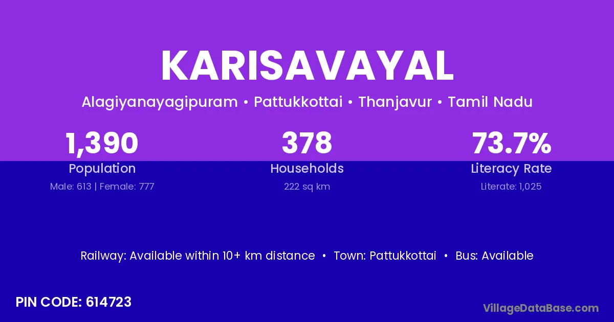 According to Census 2011 information, the village code of Karisavayal village is 614723.