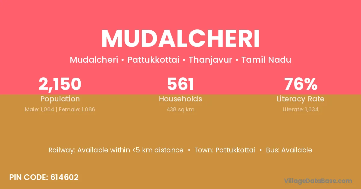 Pattukkottai is the nearest town to Mudalcheri village for major economic activities