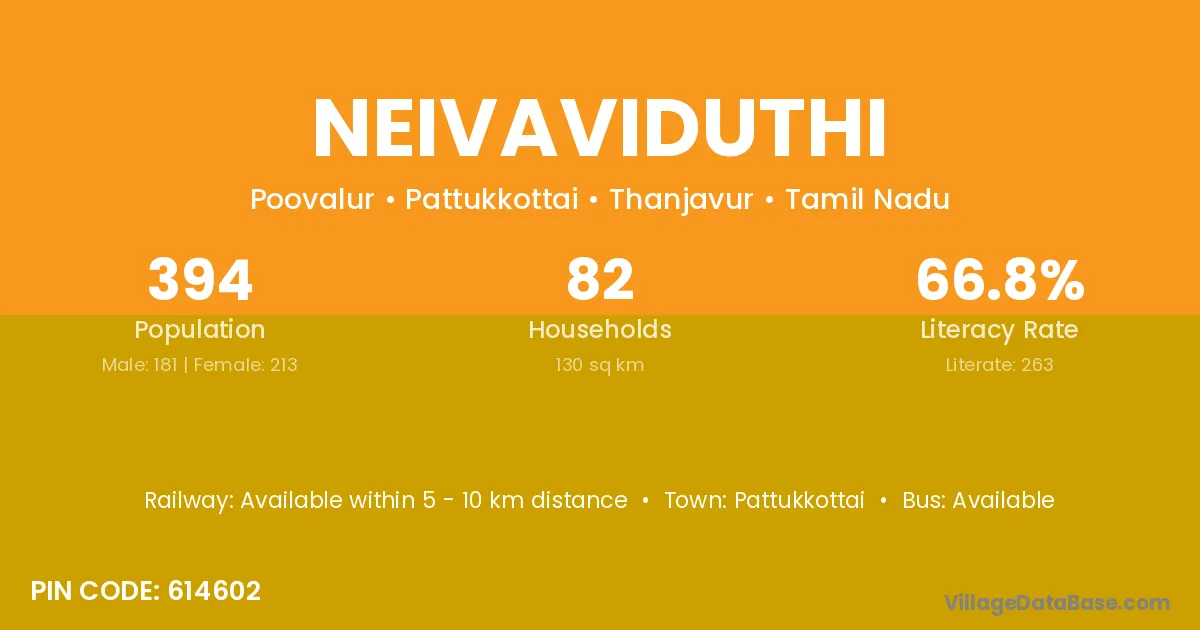 Pattukkottai is the nearest town to Neivaviduthi village for major economic activities