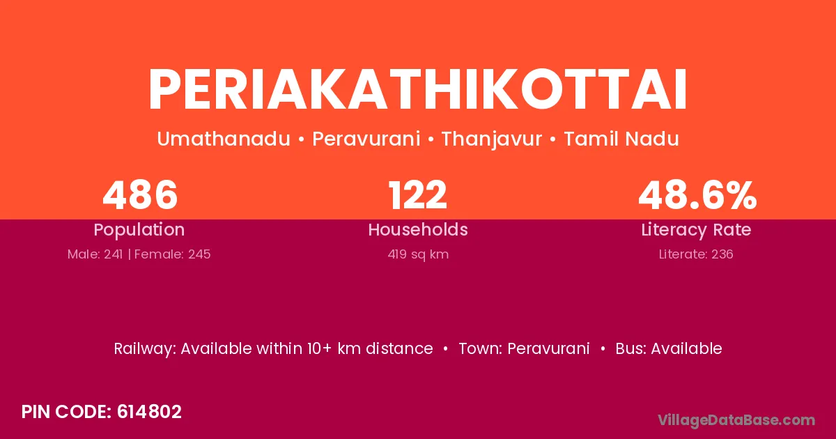 Periakathikottai village has a total population of 486 people, of which 241 are males and 245 are females.