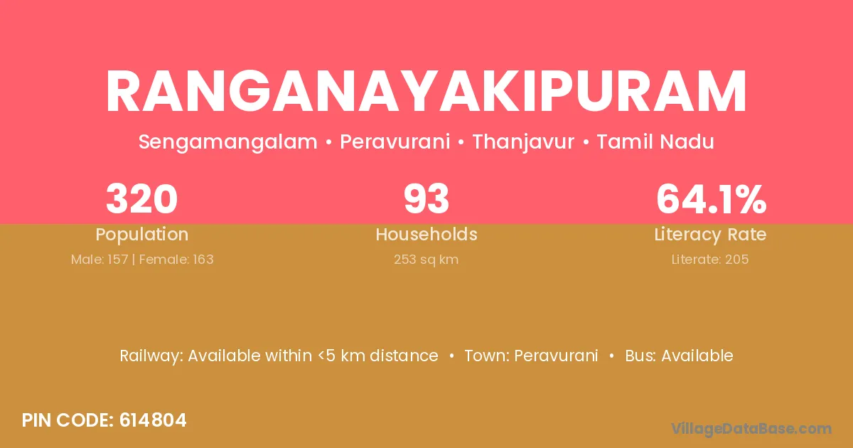 Ranganayakipuram village has a total population of 320 people, of which 157 are males and 163 are females.