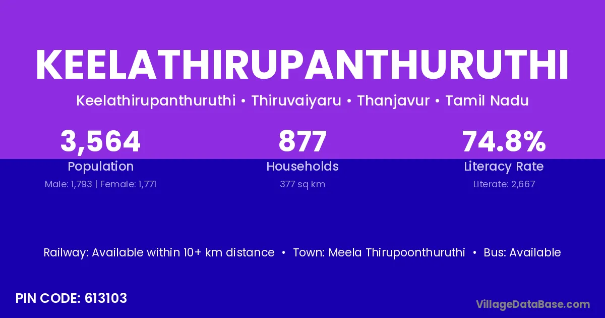 According to Census 2011 information, the village code of Keelathirupanthuruthi village is 613103.