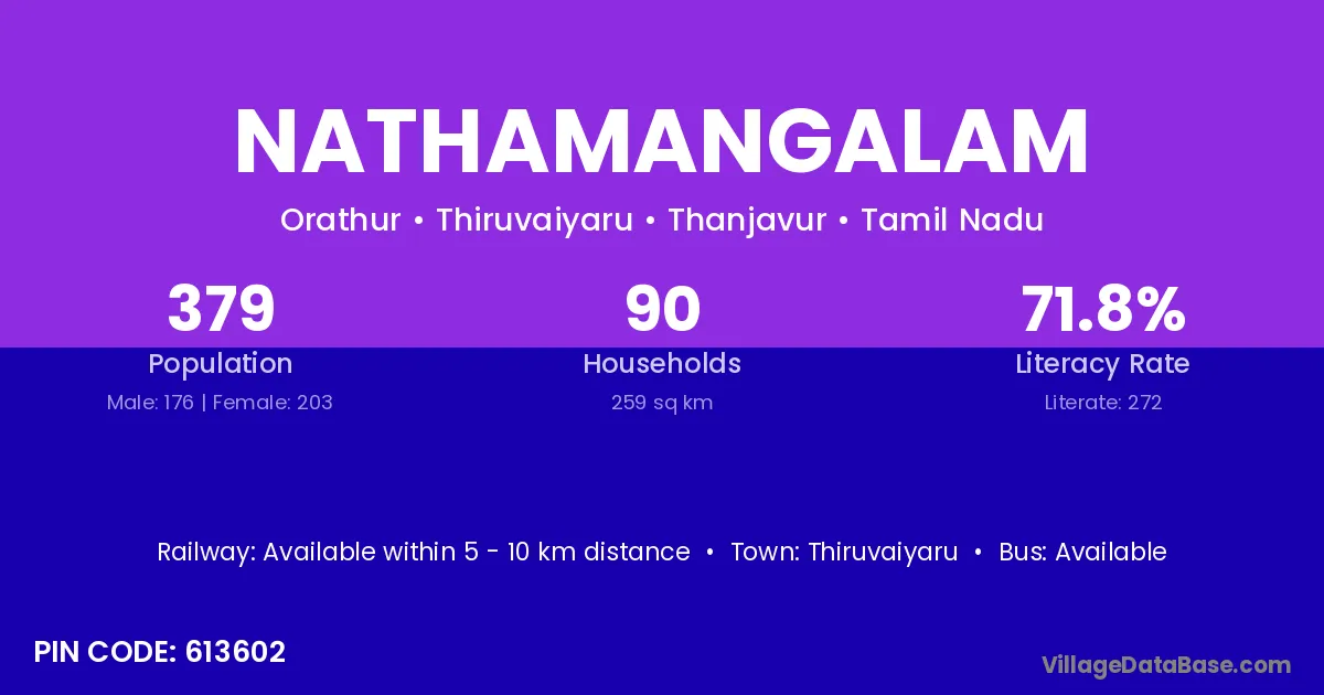 Thiruvaiyaru is the nearest town to Nathamangalam village for major economic activities