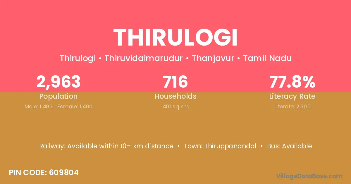 Thiruppanandal is the nearest town to Thirulogi village for major economic activities