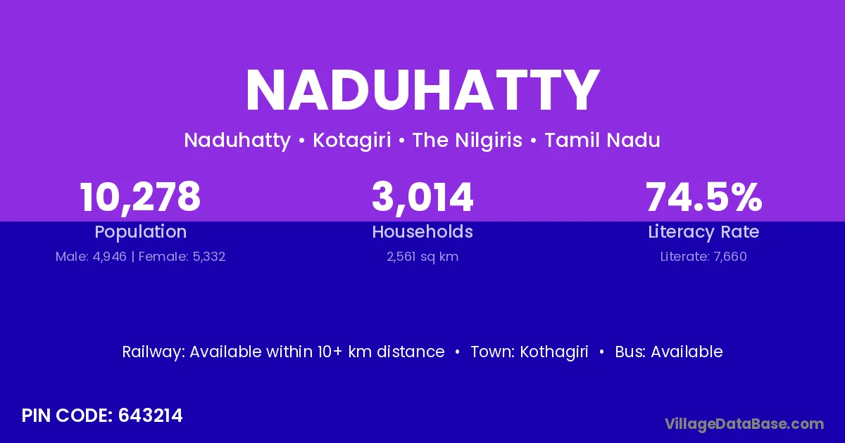 According to Census 2011 information, the village code of Naduhatty village is 643214.