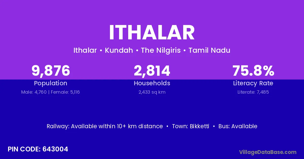 Ithalar village is located in the Kundah Taluka of the The Nilgiris district in Tamil Nadu .