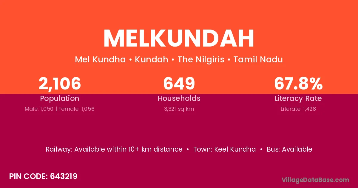 Keel Kundha is the nearest town to Melkundah village for major economic activities