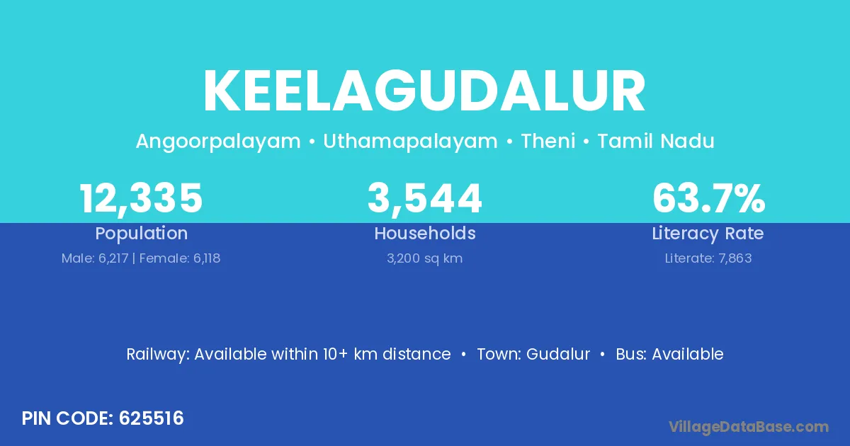 Gudalur is the nearest town to Keelagudalur village for major economic activities