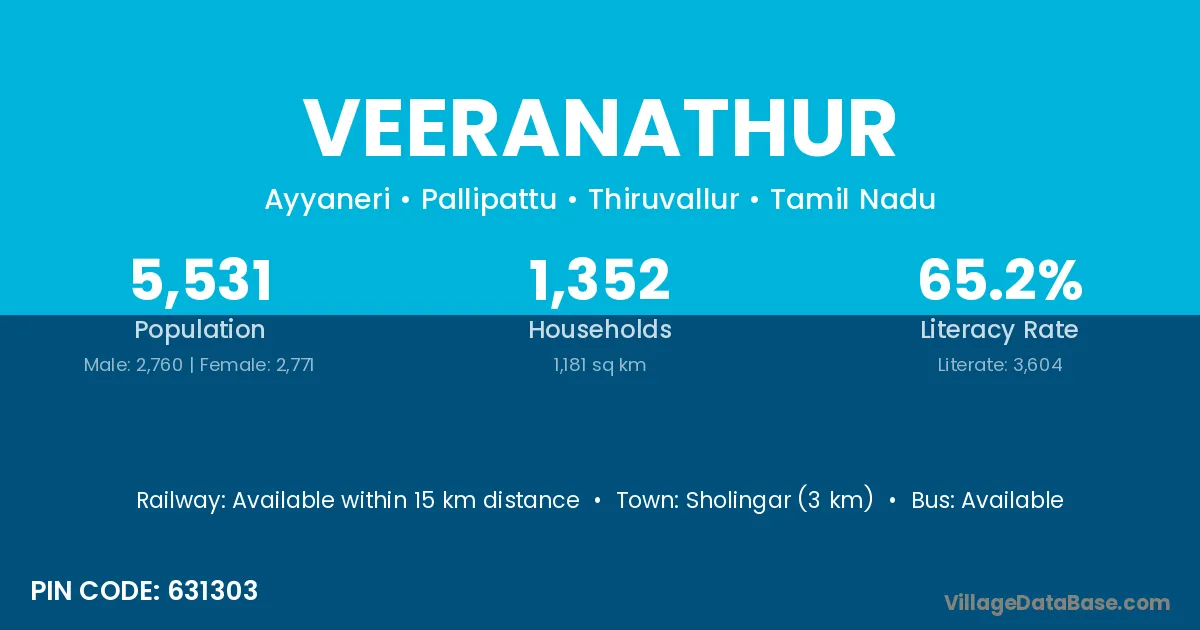 Veeranathur village has a total population of 5,531 people, of which 2,760 are males and 2,771 are females.