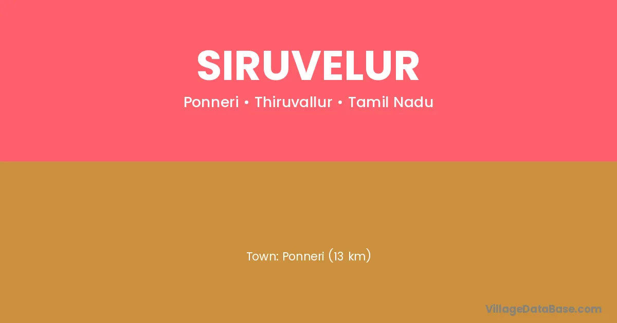 Ponneri (13 km) is the nearest town to Siruvelur village for major economic activities and is located approximately 13 km away.