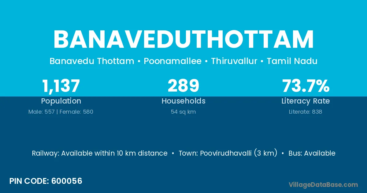 Poovirudhavalli (3 km) is the nearest town to Banaveduthottam village for major economic activities and is located approximately 3 km away.