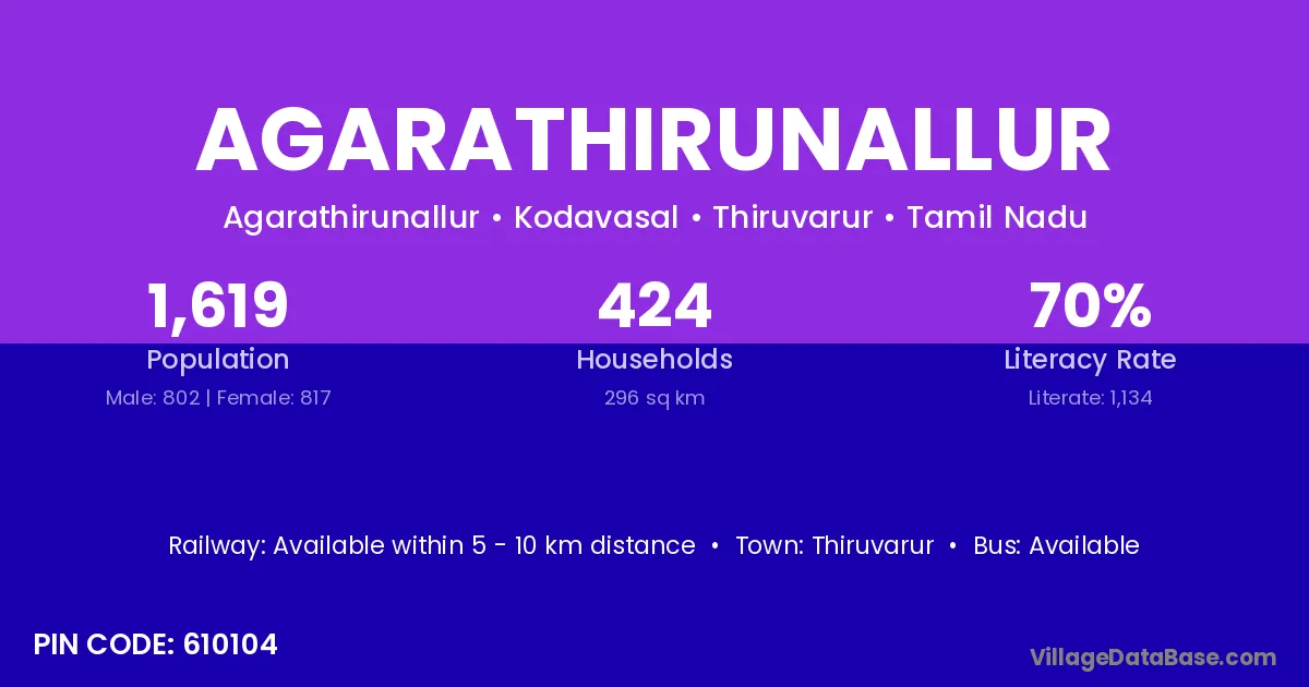 There are approximately 424 households in Agarathirunallur village.