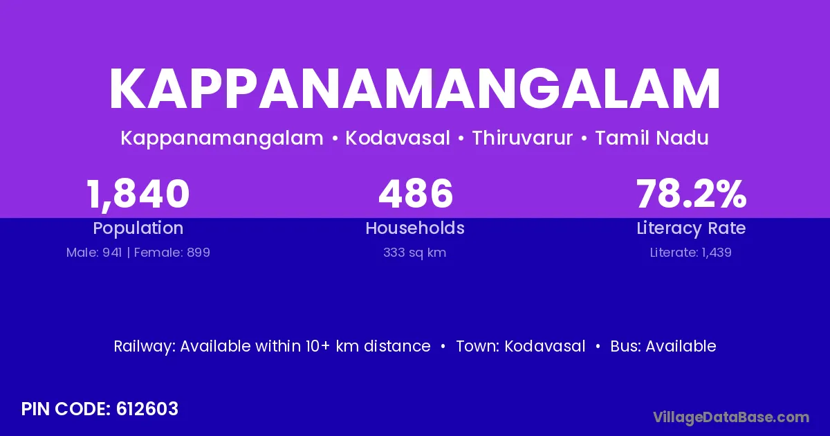 According to Census 2011 information, the village code of Kappanamangalam village is 612603.