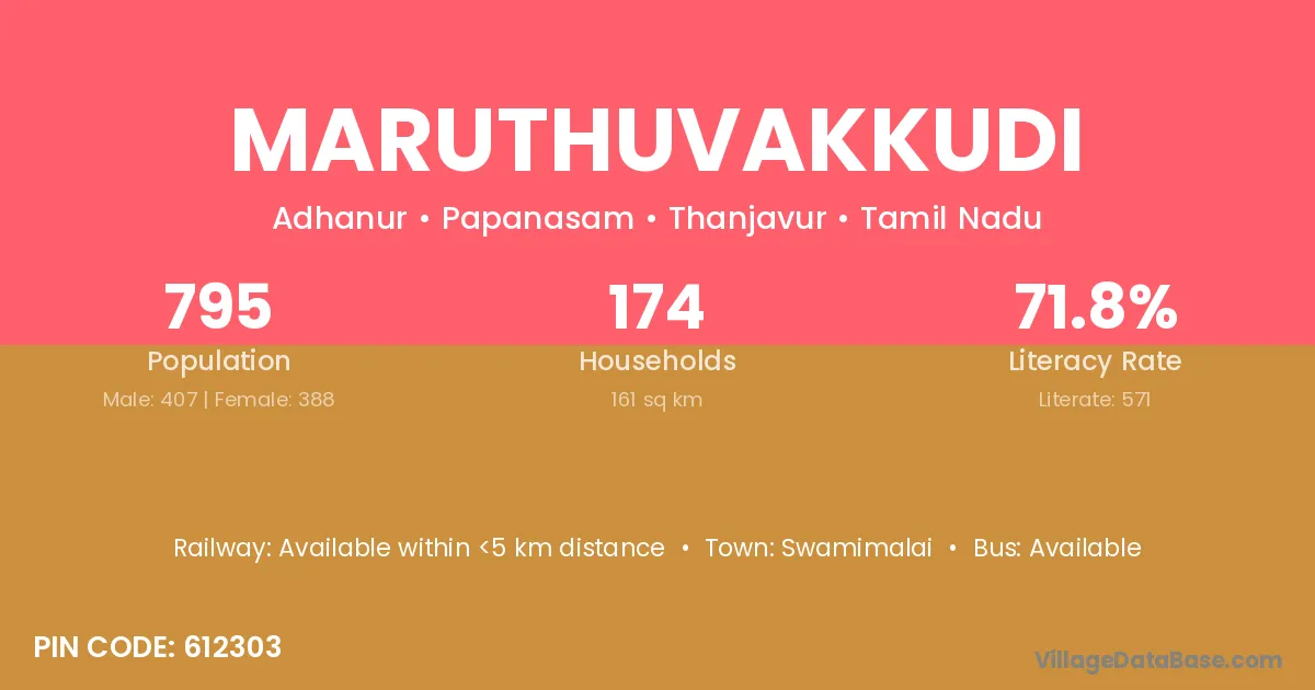 Maruthuvakkudi village has a total population of 1,526 people, of which 797 are males and 729 are females.