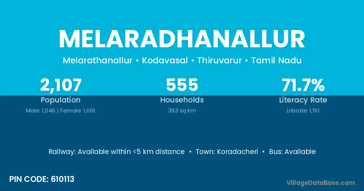 Koradacheri is the nearest town to Melaradhanallur village for major economic activities
