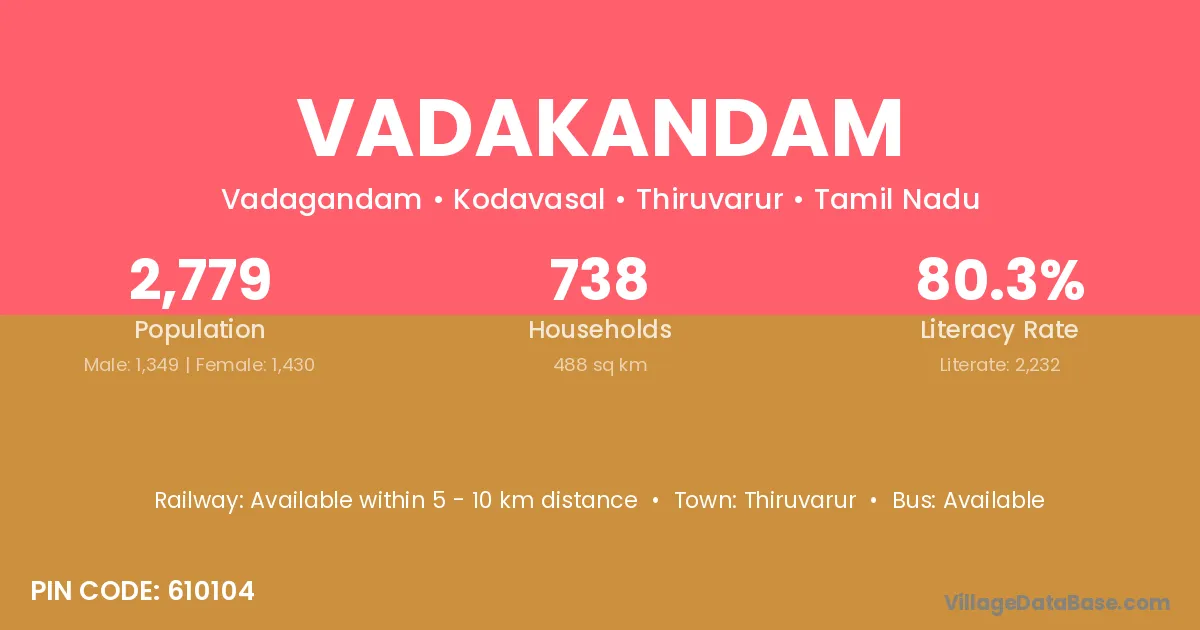 Thiruvarur is the nearest town to Vadakandam village for major economic activities